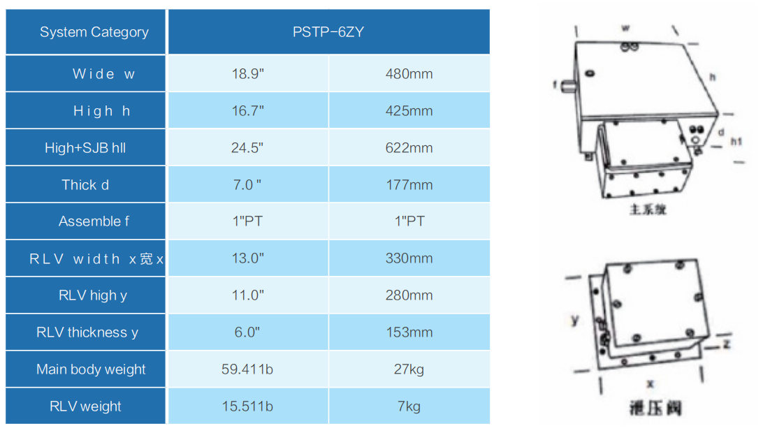 The specifications of the control unit and pressure relief unit (see attached table) allow users to select the orifice plate of the RLV pressure relief valve based on the flow rate.
